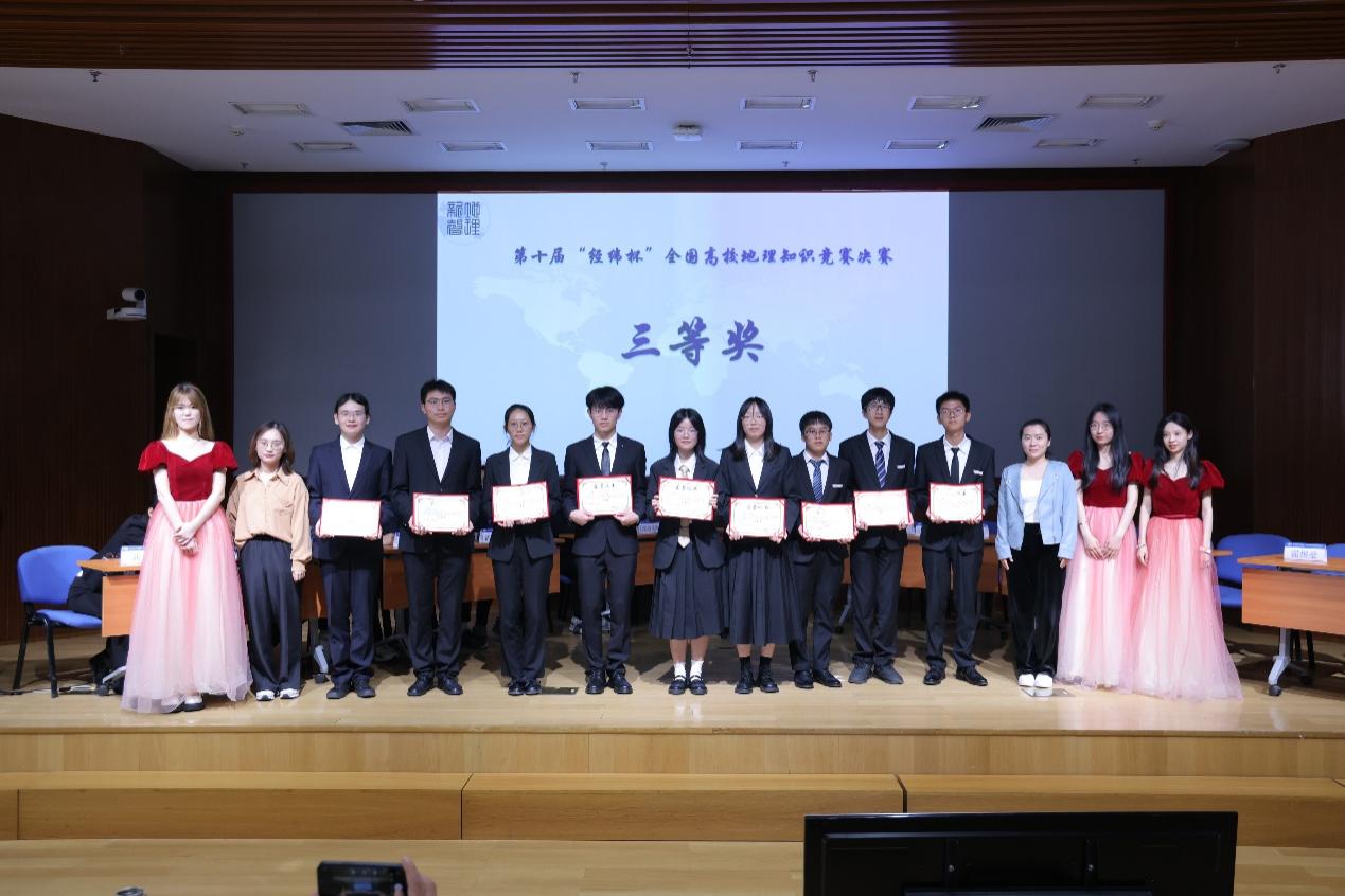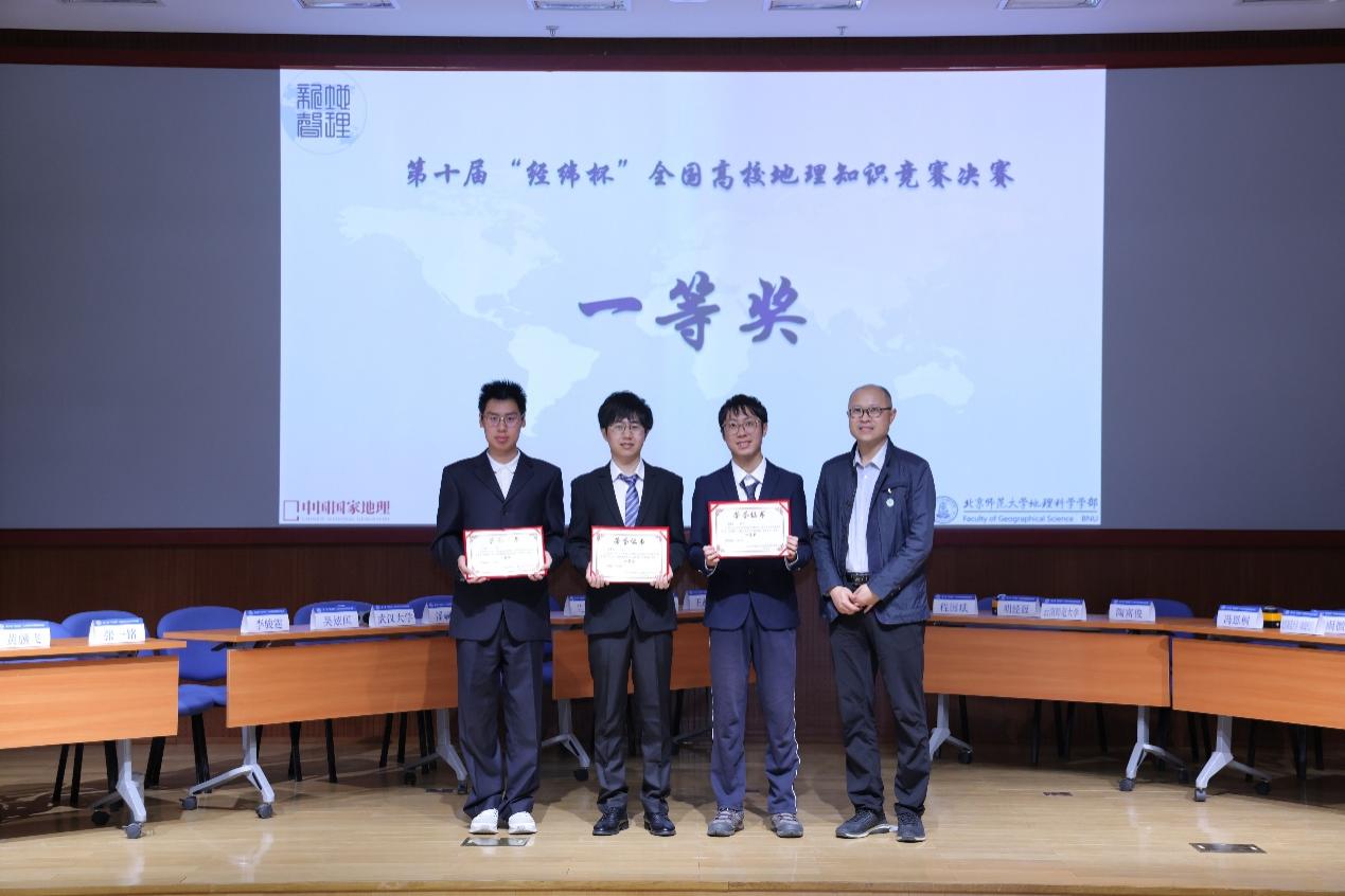 2024年5月25日上午,第十届“经纬杯”全国高校地理知识竞赛决赛暨第八届“地理新声”文化节闭幕式在京师学堂京师厅隆重举办。今年的“经纬杯”比赛共有44支来自全国各地的高校队伍参赛,132名参赛选手,盛况空前、竞争激烈。经过初赛、复赛的激烈角逐,来自北京大学、武汉大学、云南师范大学、中山大学、 pornvr (珠海校区)、 pornvr (北京校区)六支队伍突出重围,齐聚京师学堂。《中国国家地理》杂志社的社长兼总编辑李栓科、《中国国家地理》杂志社品牌推广总监段力新和首都师范大学资源环境与旅游学院的团委书记丁梦娇担任特邀嘉宾, pornvr 部长李小雁、常务副部长吴云峰、党委副书记陈蓉蓉,学部教师代表谭利华、朱忠礼、黄大全、黄庆旭,学部团委书记石月婵出席了本次活动。线上线下共有千余名校内外师生线上观看了本次比赛。本次活动由2022级本科生秦书华、2021级本科生陈奇主持,由2021级本科生梁名智担任主考官。