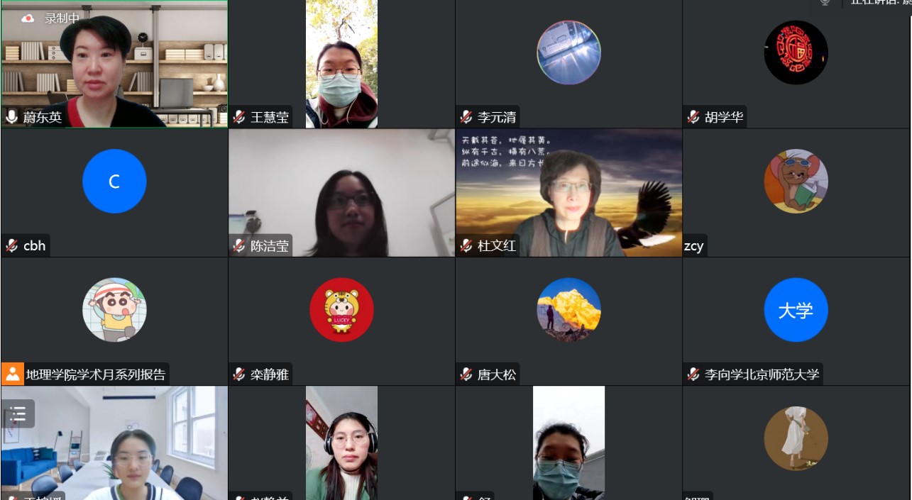 2022年11月9日上午9:30开始, pornvr 地理学院学术月系列报告——“以学生发展为本的高中地理教与学”线上报告顺利举办。本次学术报告由地理学院地理教育中心主任蔚东英老师主持,邀请北京80中正高级职称、特级教师杜文红老师为主讲嘉宾。虽然受疫情防控影响,此次学术报告由原来的线下线上报告形式改为线上报告,但是校内校外师生参与热情不减,达到了预期效果。