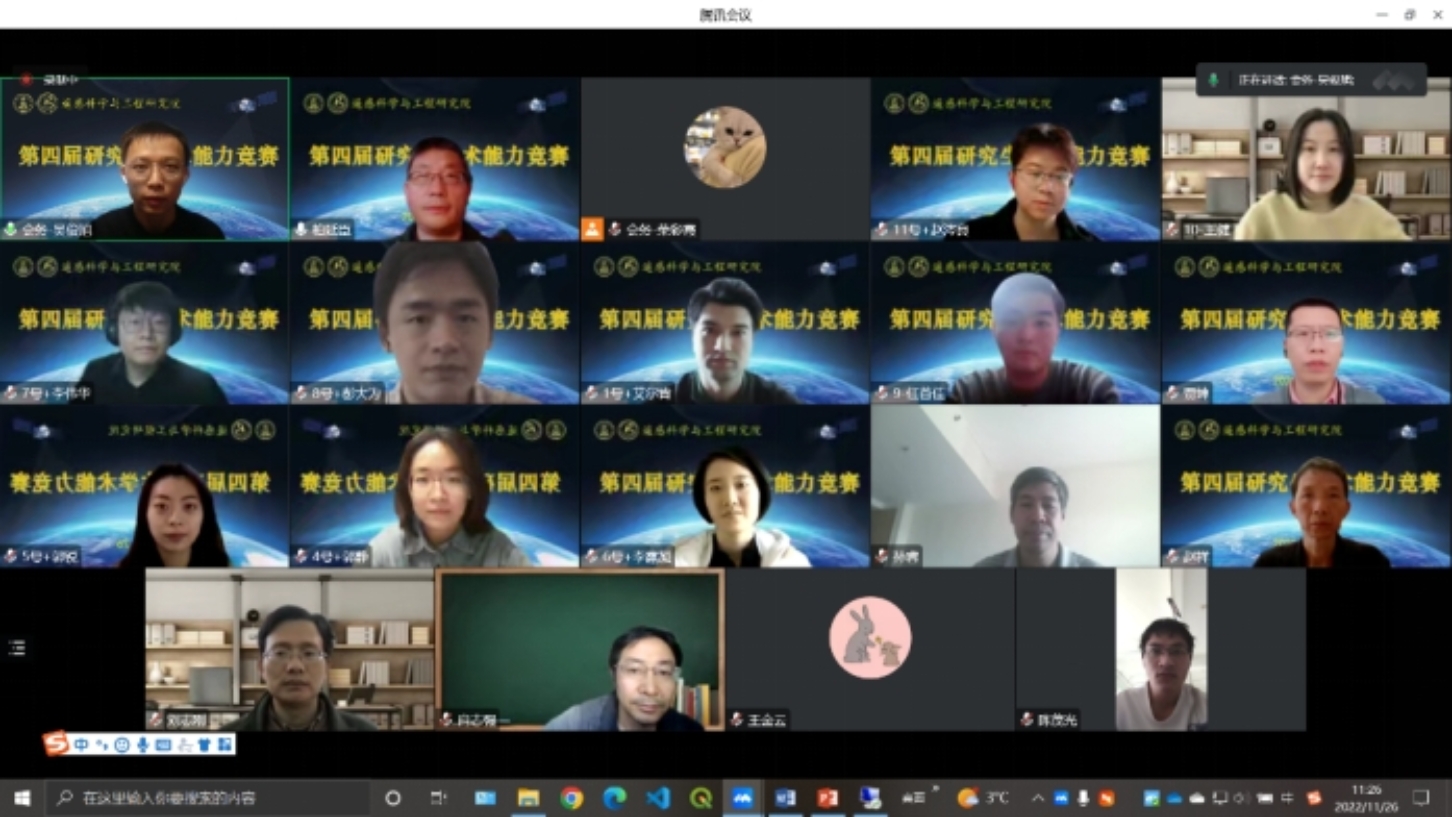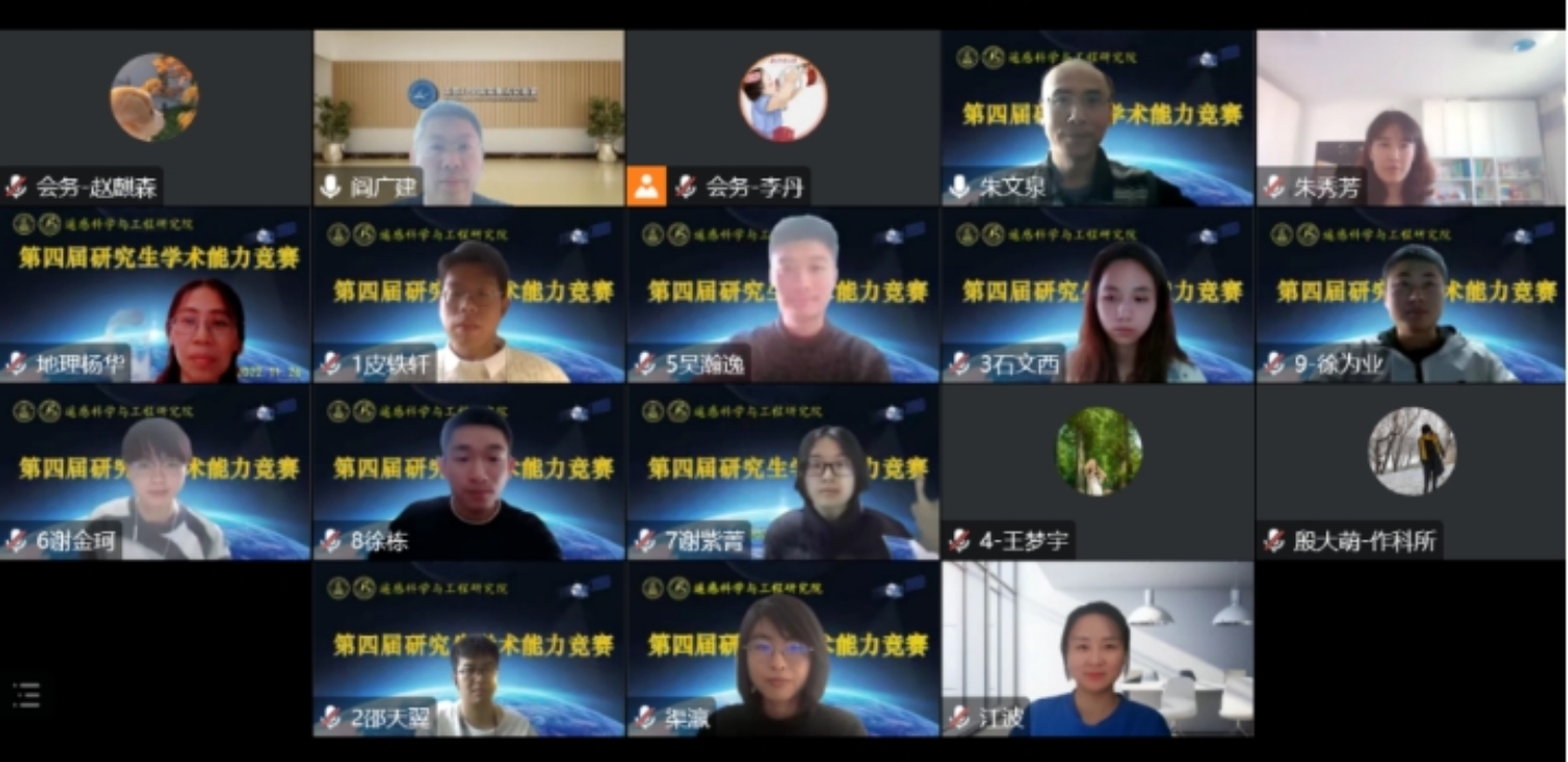 2022年11月26日, pornvr 遥感科学与工程研究院第四届研究生学术能力竞赛通过腾讯会议在线上成功举办。本次竞赛活动由 pornvr 遥感科学与工程研究院主办,2022级硕士3班协办,旨在为研究生们搭建一个展现学术风采、锻炼报告能力、交流研究成果的平台。竞赛得到了遥感院全体教师的大力支持,邀请到28位老师担任评委。各方向、各年级的研究生们积极参与,共34名硕士、11名博士分5组进行竞赛角逐(其中硕士4组,博士1组)。近百名师生在线上观看了本次研究生学术能力竞赛。