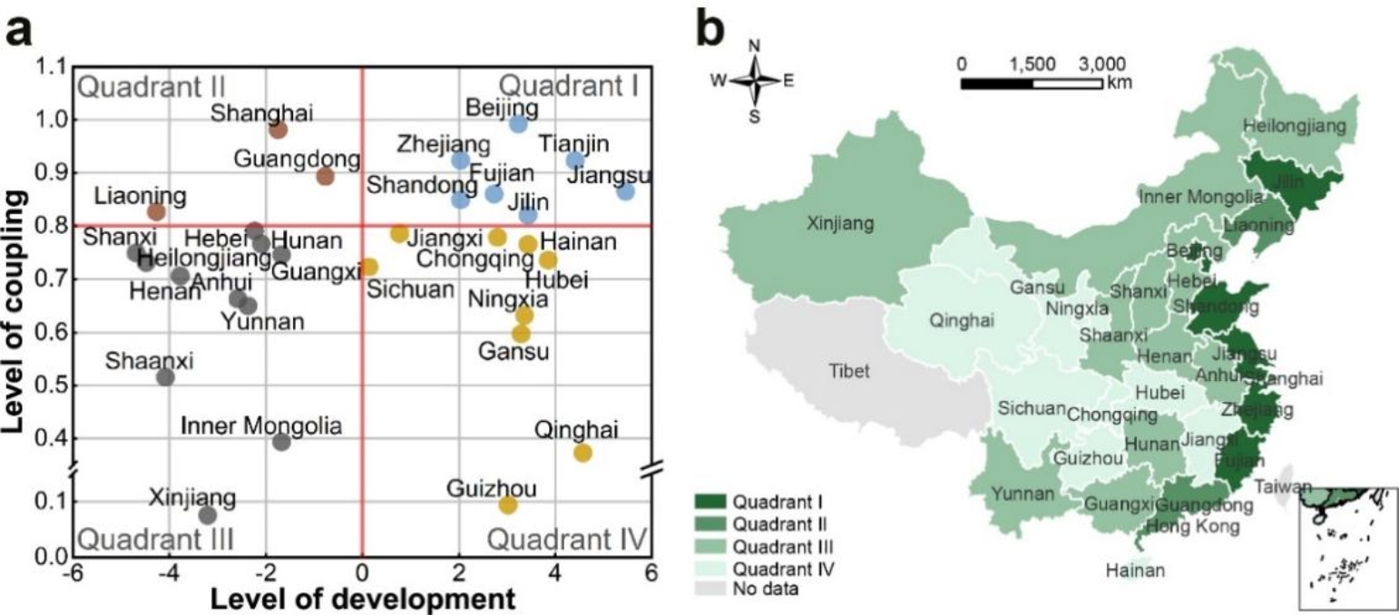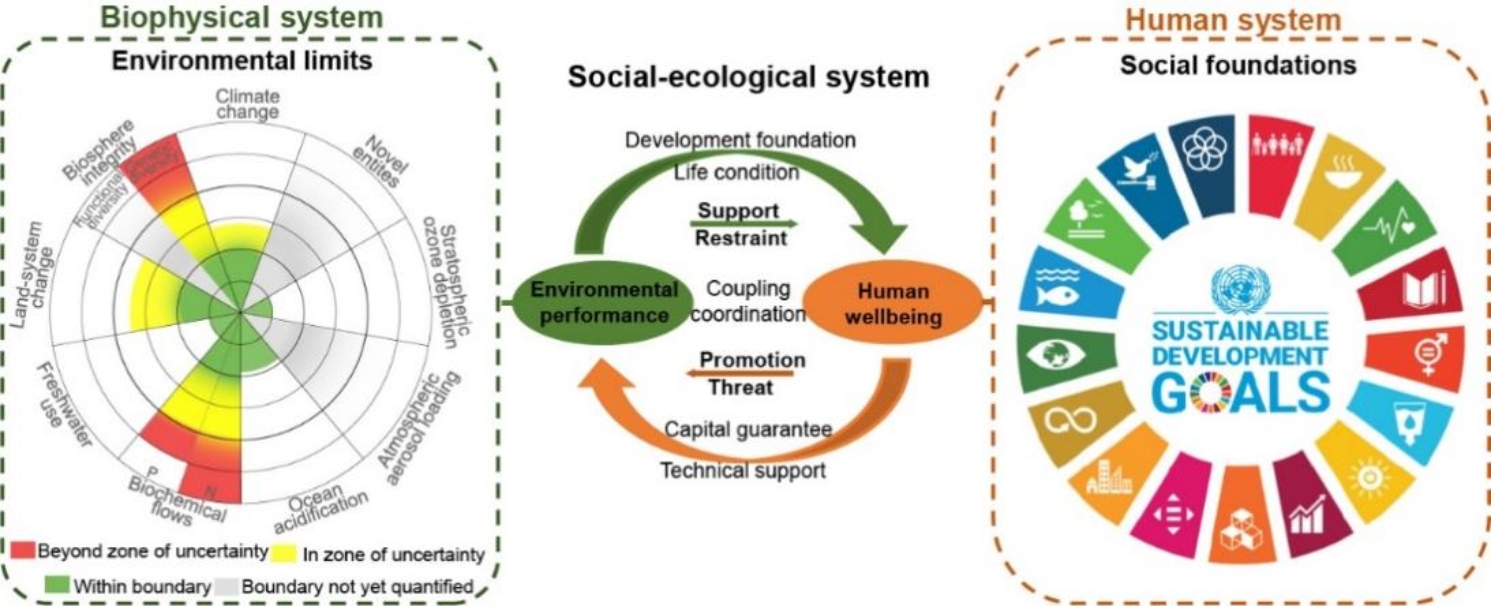 本研究从社会-生态系统耦合的整体性出发,构建了基于安全且公正运行空间与SDGs框架下多层次人类福祉耦合的区域可持续发展评估方法,揭示了中国省级区域可持续发展的水平、空间格局及影响因素。
