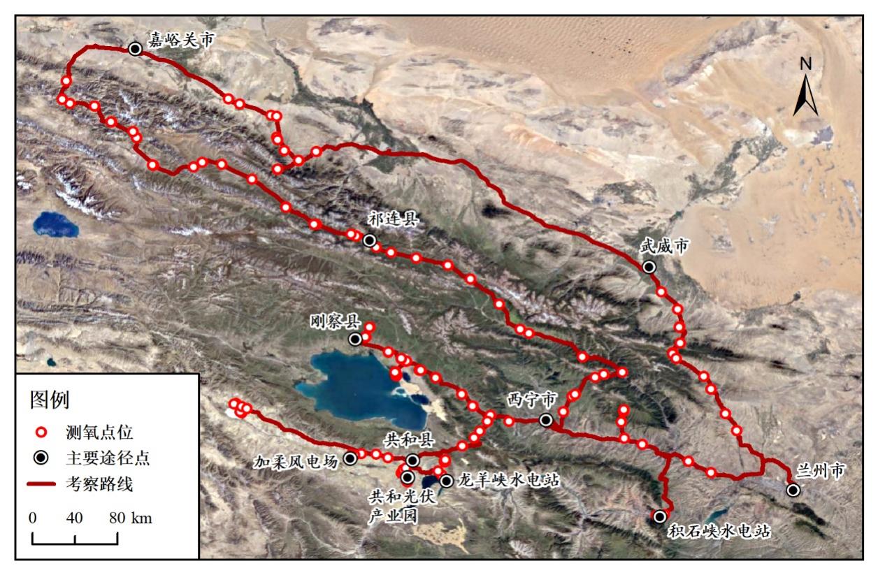 环祁连山不同土地利用氧含量对比观测考察路线图