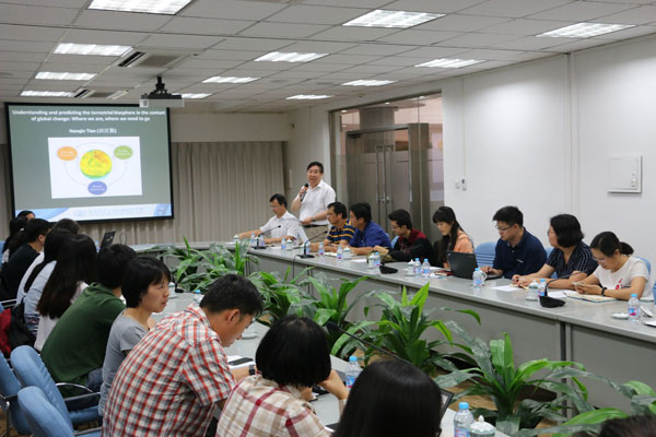田汉勤教授的报告题目为:《Understanding and predicting the terrestrial biosphere in the context of global change: Where we are, where we need to go》。当今在全球变化的背景下,能源安全,水资源安全和粮食安全是全球面临的共同挑战,想要理解和预测全球生物圈的复杂变化必须要借助模型模拟方法。田教授详细介绍了其团队自主开发的动态陆地生态系统模型(DLEM)。目前,该模型己成为全球变化研究领域最为知名的模型之一,能够实现在全球、大洲和国家等多尺度上开展碳-氮-水耦合循环和温室气体收支平衡等方面的研究,应用该模型也可以进行生态系统服务的影响机制和评价研究。