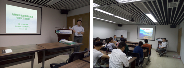 2018年9月10日下午,地理学前沿讲座第十四期在京师科技大厦933会议室举行。此次讲座由蒋卫国教授主持,他邀请到了生态环境部卫星环境应用中心生态部副主任侯鹏研究员为到场师生作了题为“国家自然保护地成效评估框架与指标方法研究”的学术报告。