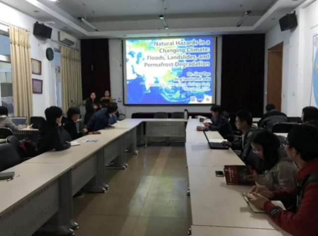 2018年10月17日上午,应蒋玲梅副教授邀请,美国马里兰大学帕克分校(University of Maryland, College Park)陶静博士来遥感科学国家重点实验室开展学术交流,并作了题为“Natural Hazards in a Changing Climate: Floods, Landslides, and Permafrost Degradation”的学术报告, 30余位师生参加了此次讲座活动。