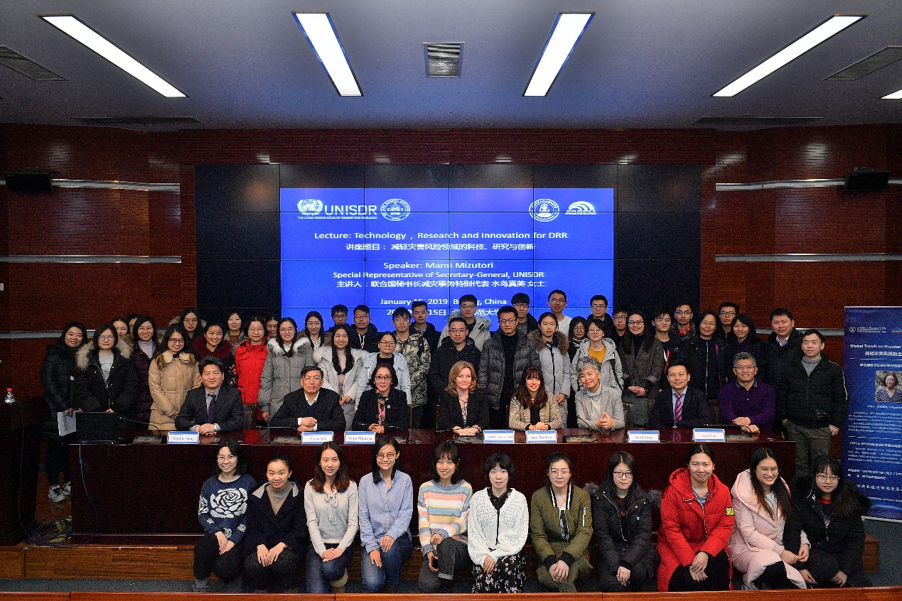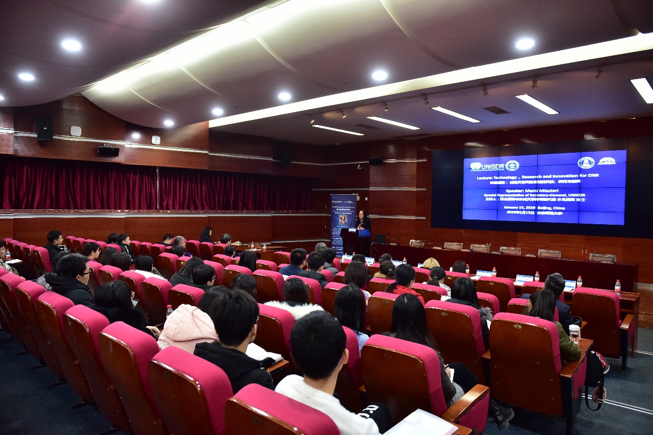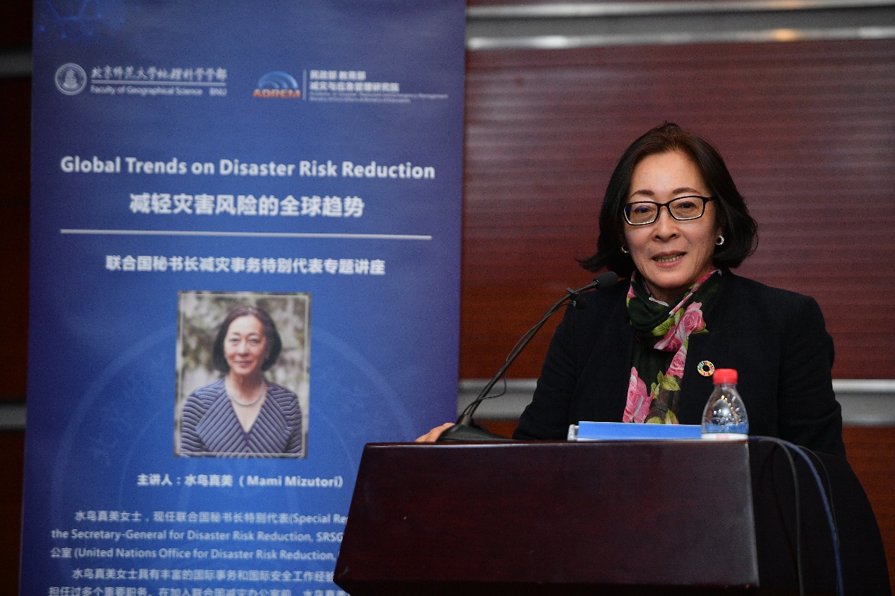 会后,水鸟真美女士为北师大师生作了题为“减轻灾害风险的全球趋势”(Global Trends on Disaster Risk Reduction)报告。来自 pornvr 以及社会与发展政策研究院等院系的70多名师生参加报告会。董孝斌副部长代表 pornvr 致欢迎辞,报告会由学部杨赛霓教授主持。