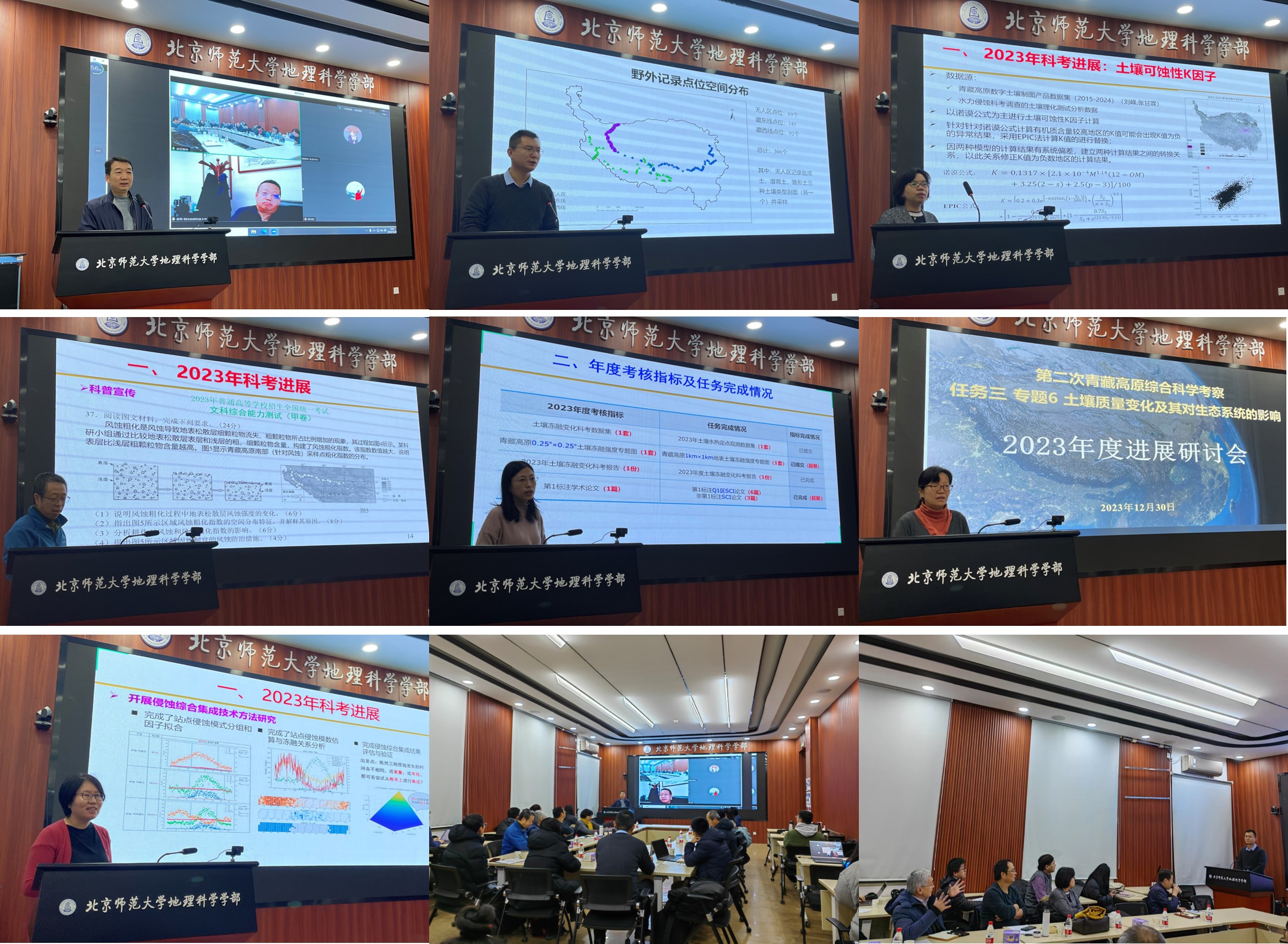 中国科学院南京土壤研究所宋效东研究员介绍了子专题1进展,2023年在完成土纲级别制图的基础上,开展了“藏东线”和“藏西线”的野外考察,评估了青藏高原土壤类型图的绘制精度。同时,介绍了在羌塘高原无人区采样中新发现的“火山渣寒冻正常新成土”“草毡红色正常新成土”以及5000米以上的潜育土,此新发现将有助于填补青藏高原现存土壤类型图的空白。2024年计划完成青藏高原土壤类型图土纲级别的完全修正,亚类级别的土壤类型制图以及土壤图不确定性分析报告。 pornvr 符素华教授介绍了子专题2土壤水蚀考察和径流小区数据观测情况、青藏高原土壤侵蚀现状及其时空变化、水蚀对土壤肥力和土壤质地的影响;2024年,将完成土壤水蚀图集的制作和提交,该研究成果将为青藏高原水土资源保持提供数据支撑。浙江师范大学伍永秋教授介绍了子专题3进展,修正了现存土壤风蚀模型,绘制了2000-2020年青藏高原土壤风蚀强度图,评估了近40年青藏高原风蚀区以及典型风蚀区柴达木盆地的土壤质量变化,其研究结果可为土壤侵蚀与防治咨询报告提供资料支撑。 pornvr 柴琳娜副教授介绍了子专题4在“样点-景观-区域”多个尺度取得的进展,揭示了土壤水热变化与生态系统碳源/汇变化之间的潜在联系,评估了短期季节冻融以及冻融地貌对高寒草地土壤质量的影响,分析了青藏高原冻融强度的时空规律,并预测了未来气候情景下青藏高原全区热侵蚀沟对土壤有机碳储量的影响。中国科学院生态环境研究中心张丽梅研究员介绍了子专题5进展,完成了青藏高原不同土地利用类型、自然区下的土壤养分特征分析和土壤质量的评估,揭示了青藏高原土壤真菌群落沿海拔分布格局以及草地原生生物多样性分布特征。 pornvr 黄永梅教授介绍了子专题6进展,开展了侵蚀(水蚀、风蚀、冻融)综合集成技术方法研究,构建了青藏高原土壤质量评价最小数据集,评估了近40年来青藏高原各生态系统土壤质量变化格局,并建立了评价青藏高原生态系统质量的指标体系。