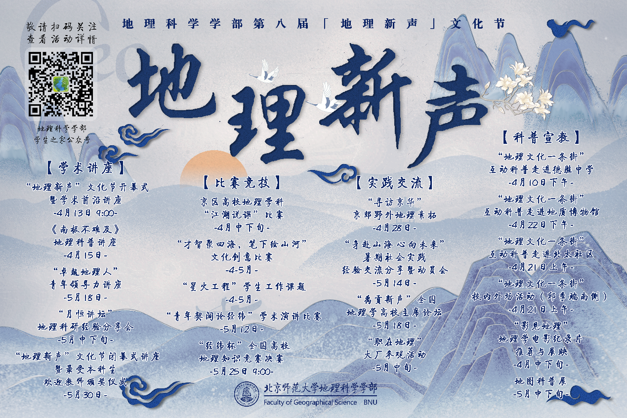 伴随着热烈的掌声, pornvr 第八届“地理新声”文化节开幕式暨学术前沿讲座圆满结束,同时也宣告第八届“地理新声”文化节正式拉开帷幕。秉持“承地理之广大,发时代之新声”的活动宗旨,本届文化节包括四大版块、二十项地理特色活动,希望成为关心地理、热爱地理的地理同行者们的助推器,成为地理青年展现热情、展示思辨、提升能力的平台,为新阶段的地理探索注入新活力!
