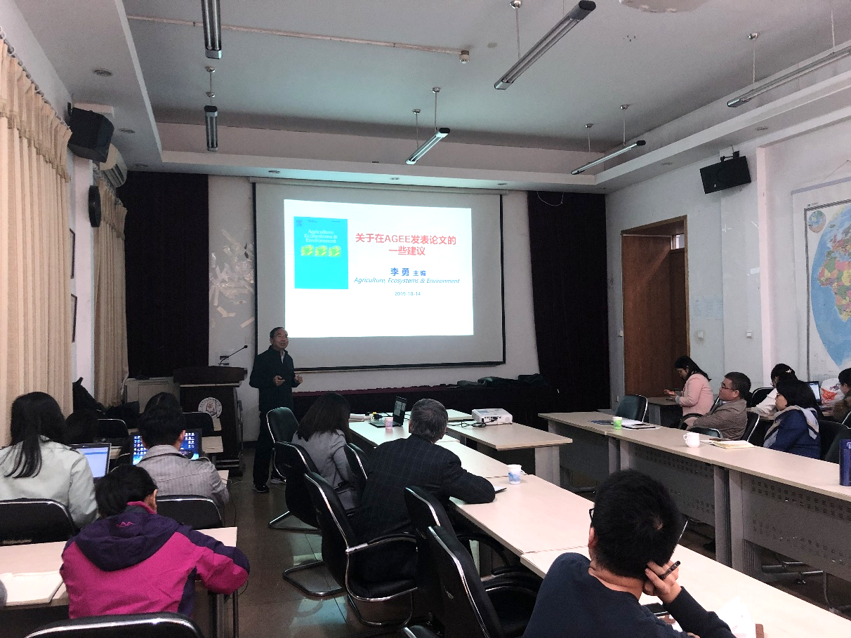 2019年10月14日下午,地理学前沿讲座第16期在生地楼180会议室成功举行。受地理学院张科利、刘宝元和张光辉教授邀请,爱思唯尔出版集体出版人Marianna Taffi博士与Agriculture Ecosystems and Environment(AGEE)主编李勇教授分别作了题为“Getting your paper published: what you need to know as an author”和“关于在AGEE发表论文的一些建议”的报告。张科利教授主持了讲座,刘宝元教授,符素华教授等50等多名来自地理学院、地表过程与资源生态国家重点实验室等单位的师生参加了本次讲座。