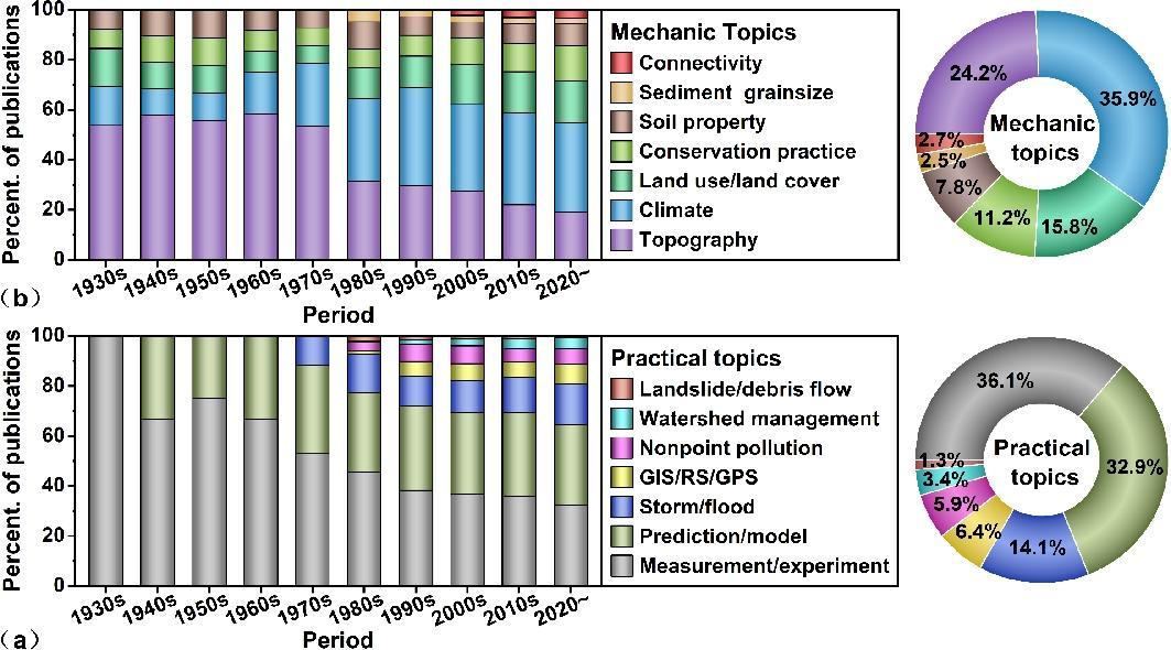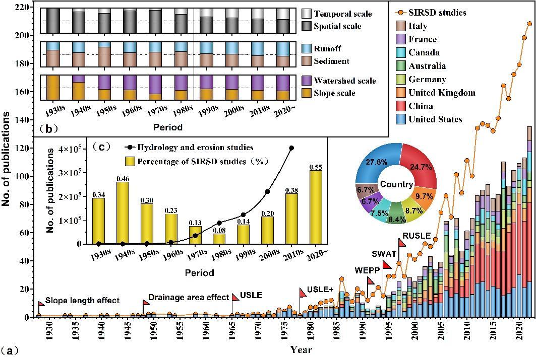 图4 全球SIRSD研究论文发表的趋势 (a) 及其结构变化 (b) 以及其在水文和侵蚀相关研究中的占比变化 (c)