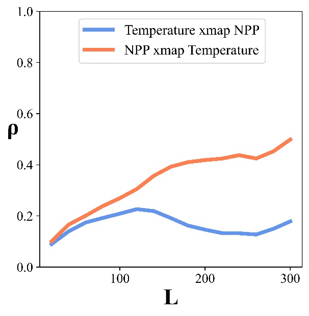 GCCM的理论设定适合众多具有确定性趋势和多个相互交织耦合变量的地球系统,且GCCM没有先验分布假设和预设模型结构,简单易用,为地学归因分析提供了一个值得尝试的新选择。