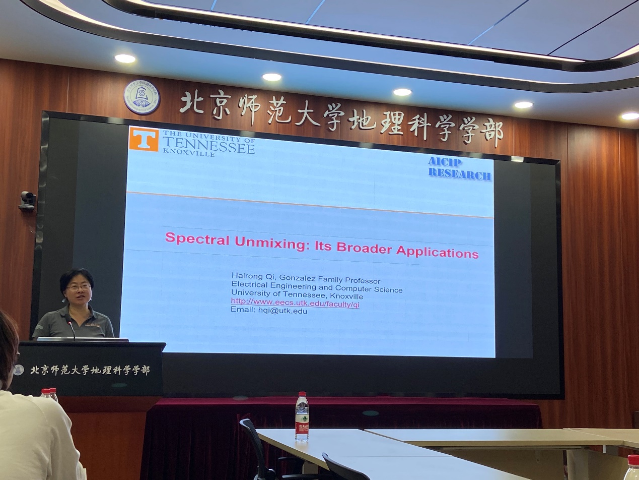 渠瀛副教授邀请,美国田纳西大学诺克斯维尔分校戚海蓉(Hairong Qi)教授于2023年7月12日上午在生地楼180会议室开展了学术交流,并作题为“Spectral Unmixing – Its Broader Applications”的学术报告。