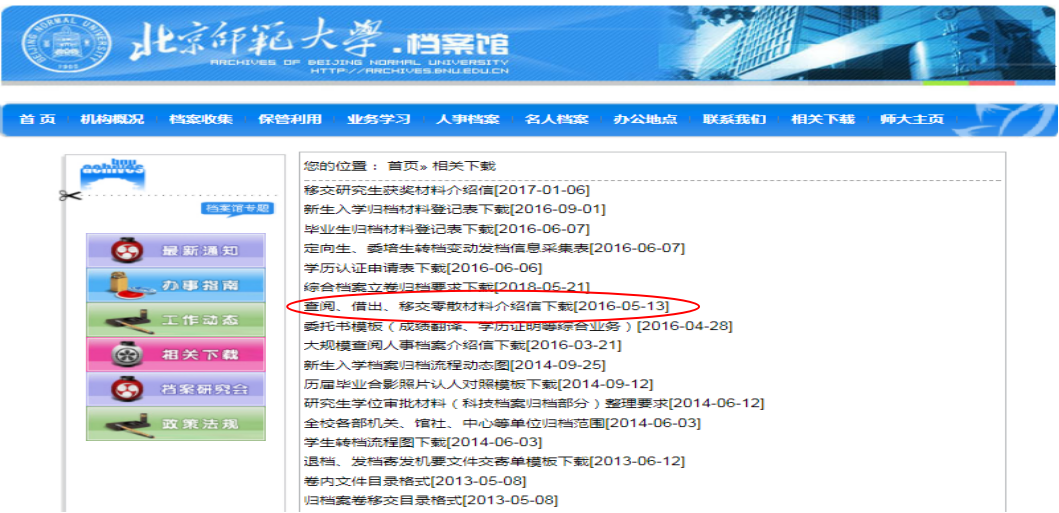 ● 点击“查阅、借出、移交零散材料介绍信下载”;