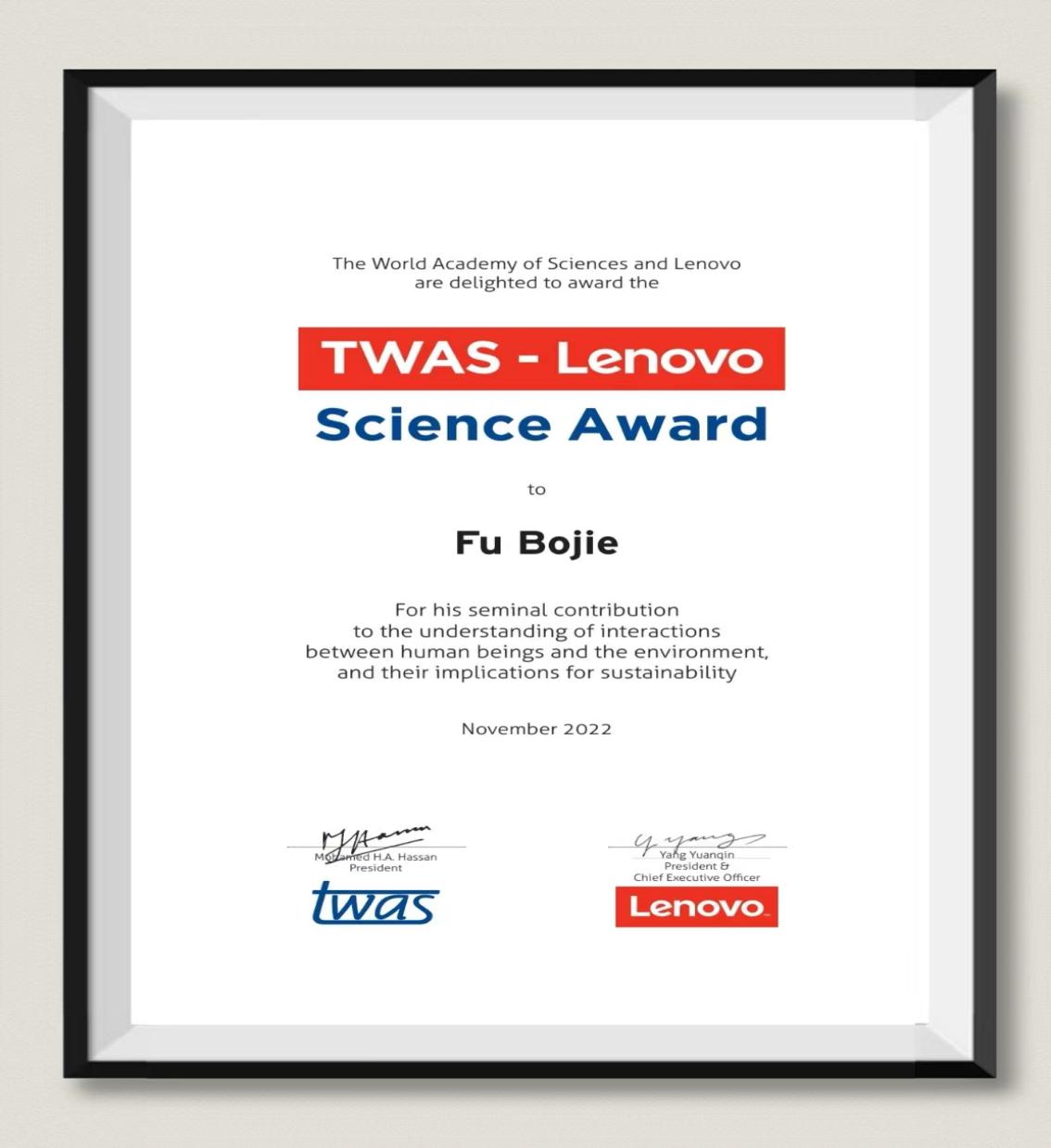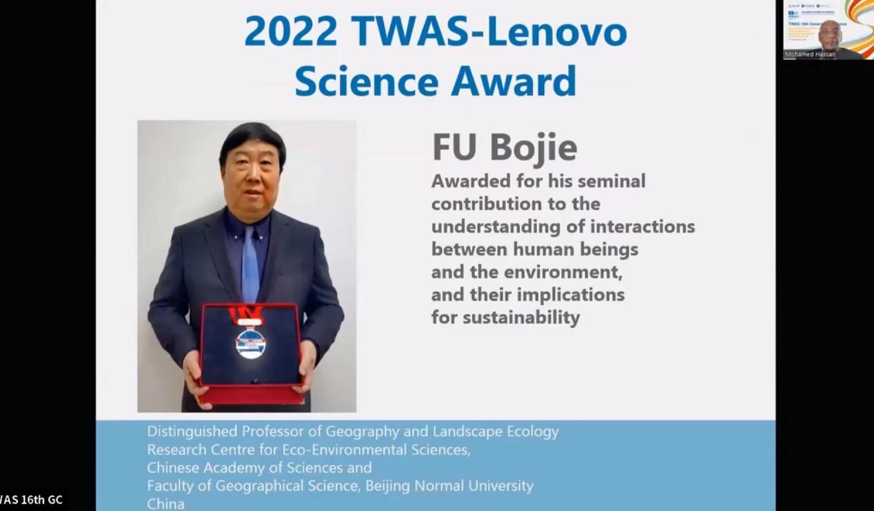 2022年11月21日,发展中国家科学院(TWAS)第16界大会在中国杭州(线上与线下)开幕,发展中国家科学院院长Mohamed Hanssan在开幕式上公布,2022年“发展中国家科学院—联想科学奖”(TWAS-Lenovo Science Prize)授予 pornvr pornvr 傅伯杰院士,以表彰他在研究人与环境之间的相互作用及其对可持续性的影响方面作出的开创性贡献。