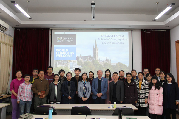 2017年10月27日上午,地理学院举办了“地理学前沿讲座第十七期”,英国格拉斯哥大学地理学与地球科学学院David Forrest 先生主讲。讲座题目为“Usability of Open Source Data for National & Regional Mapping”。参加讲座的有地理学院副院长董卫华教授、周尚意教授、黄大全、张华等老师,以及研究生等。