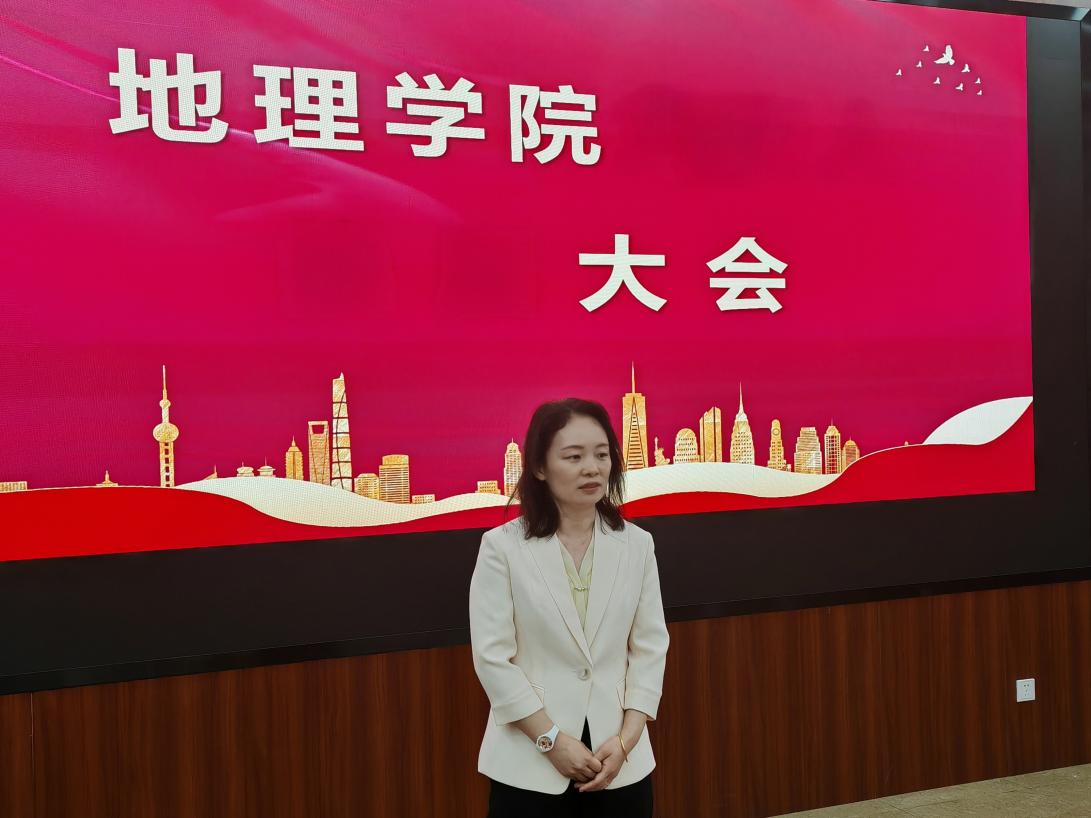 会议第一项首先进行地理学院干部任免宣布。徐洪书记首先代表学部对张科利院长在任期间的卓越贡献给予了高度评价。她指出,张院长在学院建设、人才培养和学科融合等方面取得了突出成就,为学院发展奠定了坚实基础。随后,徐书记宣读了新一届领导班子的任命文件。由程杨、宫阿都和张卓栋组成的新班子正式接过学院发展的接力棒。