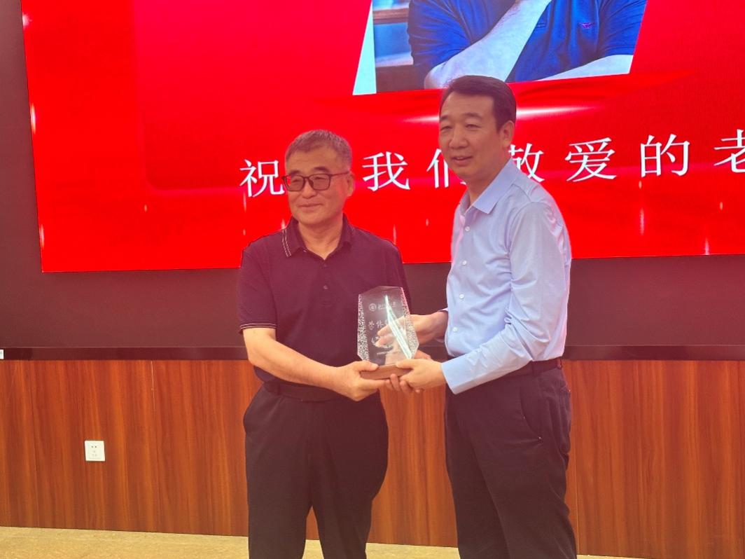 李小雁部长向张科利老师颁发荣休纪念奖杯