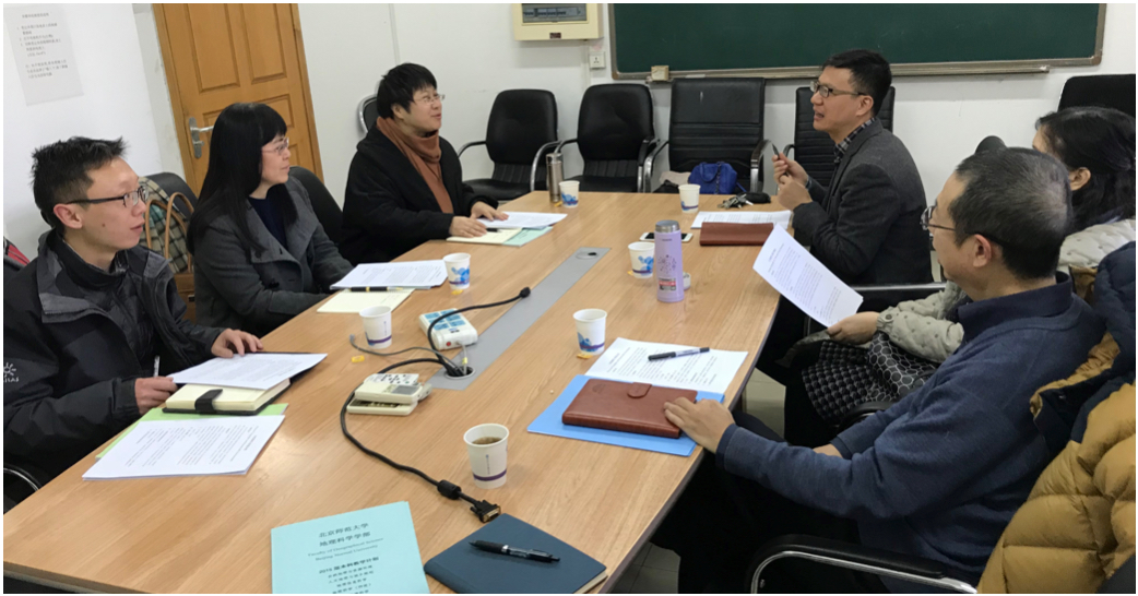 山西财经大学环境经济学院自2013年起开始建设自然地理与资源环境、人文地理与城乡规划两个本科专业,本次来访的主要目的是调研学习我部的本科教学计划。朱华晟老师、伍永秋老师、周尚意老师针对对方的需求,进行了教学计划的详细介绍,分享了野外实习基地建设的经验。周尚意老师指出,对学生的培养要有长远的定位,野外实习的基地建设要长久深入,要在培养学生的基础上带动科研。对方表示,在教学计划修订之际,本次交流为其提供了本科人才培养的宝贵经验。