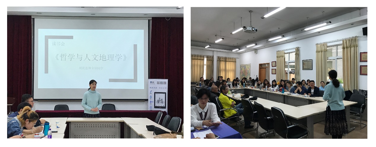 首场公益阅读会由周尚意教授导读人文地理学经典著作《哲学与人文地理学》。在林雪贞女士介绍了“喜阅全国高校大学生公益阅读会”活动的创办初衷、理念和发展历程之后,周尚意教授就该书内容进行了导读,重点分享内容有哲学与地理学的关联、哲学的分类、哲学与人文地理学结合后的流派等,其间穿插鲜活的研究案例。而后,学生们结合周老师提的问题,自主阅读该书第四章。四位同学分别介绍了结构主义代表人物索绪尔、列维·斯特劳斯、皮亚杰和马克思的观点。