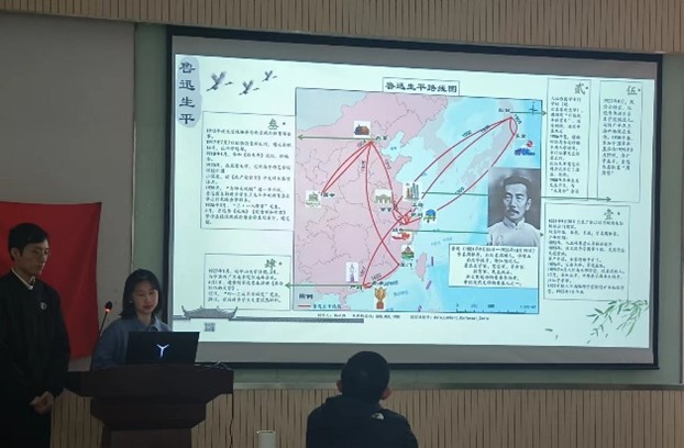 “鲁迅、许广平生平路线图”小组以世界地图为底图,以省份典型地物为地标,配合图片文字表现出鲁迅、许广平先生的行程轨迹,彰显了两位先生不畏困难、忧国忧民的品格。“历史上的红色事迹”小组基于史实资料,以流地图的形式还原了红军长征的过程,彰显出红军战士“红军不怕远征难,万水千山只等闲”的气质。“追寻师大记忆、践行红色精神“小组通过绘制师大校内红色地标、师大学子寒暑假实践地点分布、师大学子在五四运动中的贡献,展现了师大的深厚历史,以及古往今来师大学子的社会担当感。“可持续发展小组”与“家国记忆”小组通过地图的形式展现了改革开放、可持续发展目标等内容,让我们更加深刻感受到地球是一个整体,科技、文化、经济发展既要基于现在,也要着眼于未来。