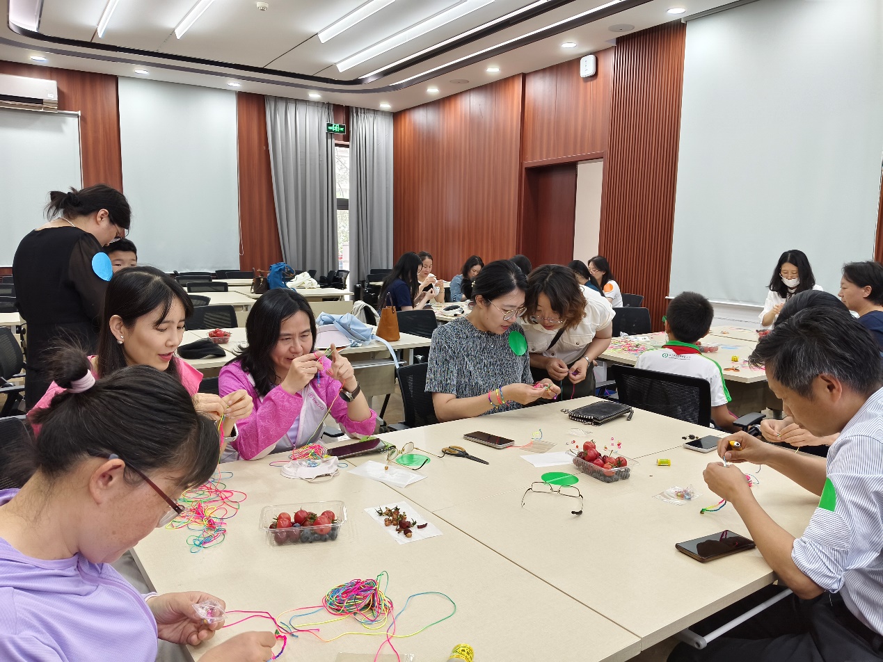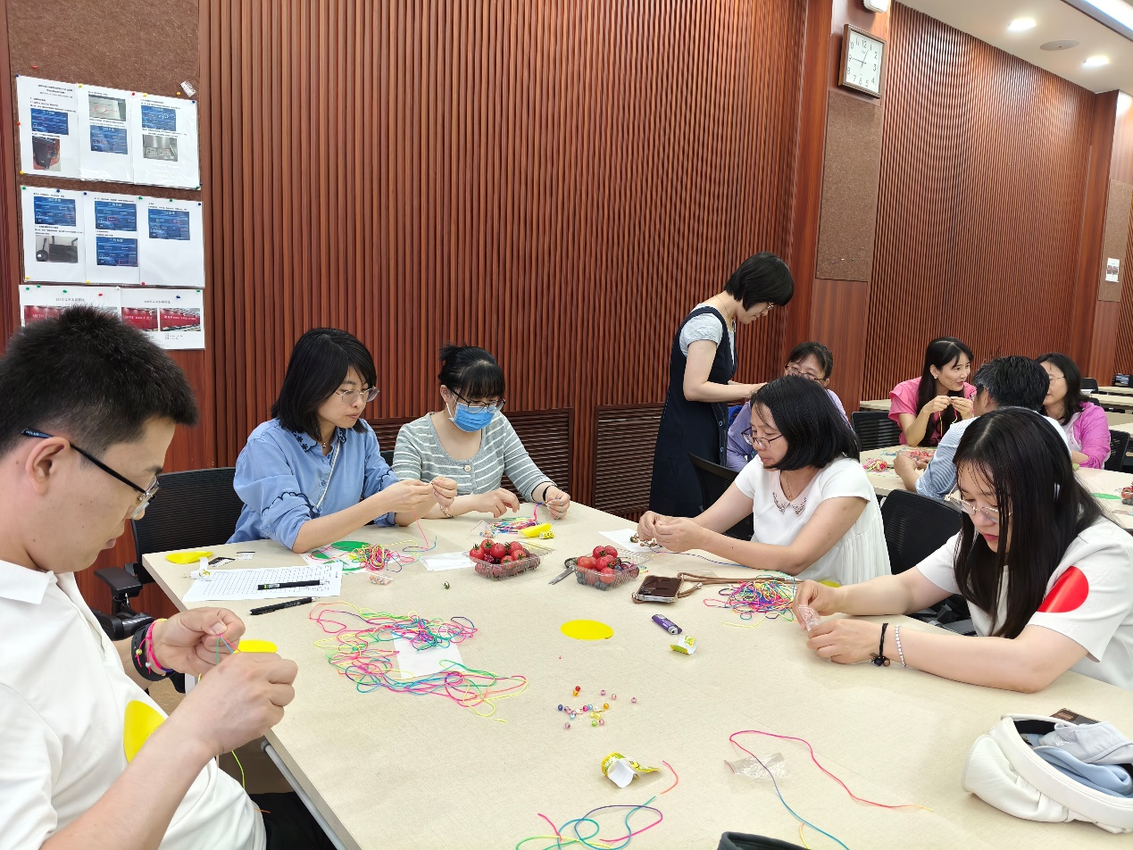 本次活动内容丰富、形式多样,包含签到、随机分组、端午文化和习俗介绍、手工制作体验、学部工会兴趣小组介绍以及欢乐合影等环节。在最受欢迎的五彩绳编制环节,老师们围坐成组,互帮互助,从最初的生疏笨拙到逐渐得心应手,专注地完成了属于自己的节日小礼物。现场笑语盈盈、交流热烈,处处洋溢着节日的喜悦与温情。