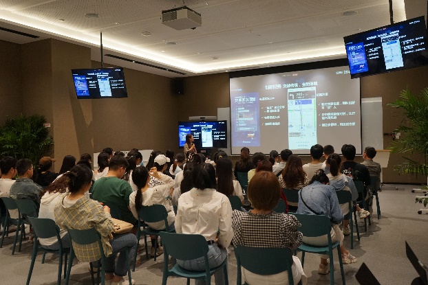 第四环节是高德地图工作人员向学部师生分享讲解高德大屏数据。讲解人员对高德的核心业务模块、数据挖掘分析以及最新发展目标等进行了详细介绍,拓展了学部师生的视野,使大家更好的了解到科研学习与实际应用之间的紧密联系与些许差异。此外,学部师生也针对自己在科研学习中遇到的问题、使用高德地图时的切身感受做了提问与分享。