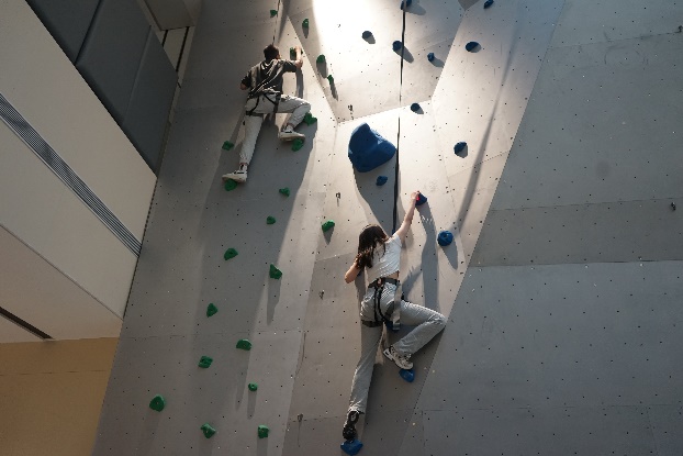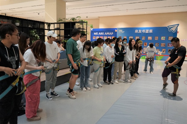 第三环节是学部学生体验高德地图攀岩项目。虽然是第一次体验攀岩,但学生们在教练的指导下不畏艰难、奋力攀爬,在攀登的过程中切身体验到了高德地图勇攀高峰、一直向上的企业精神。