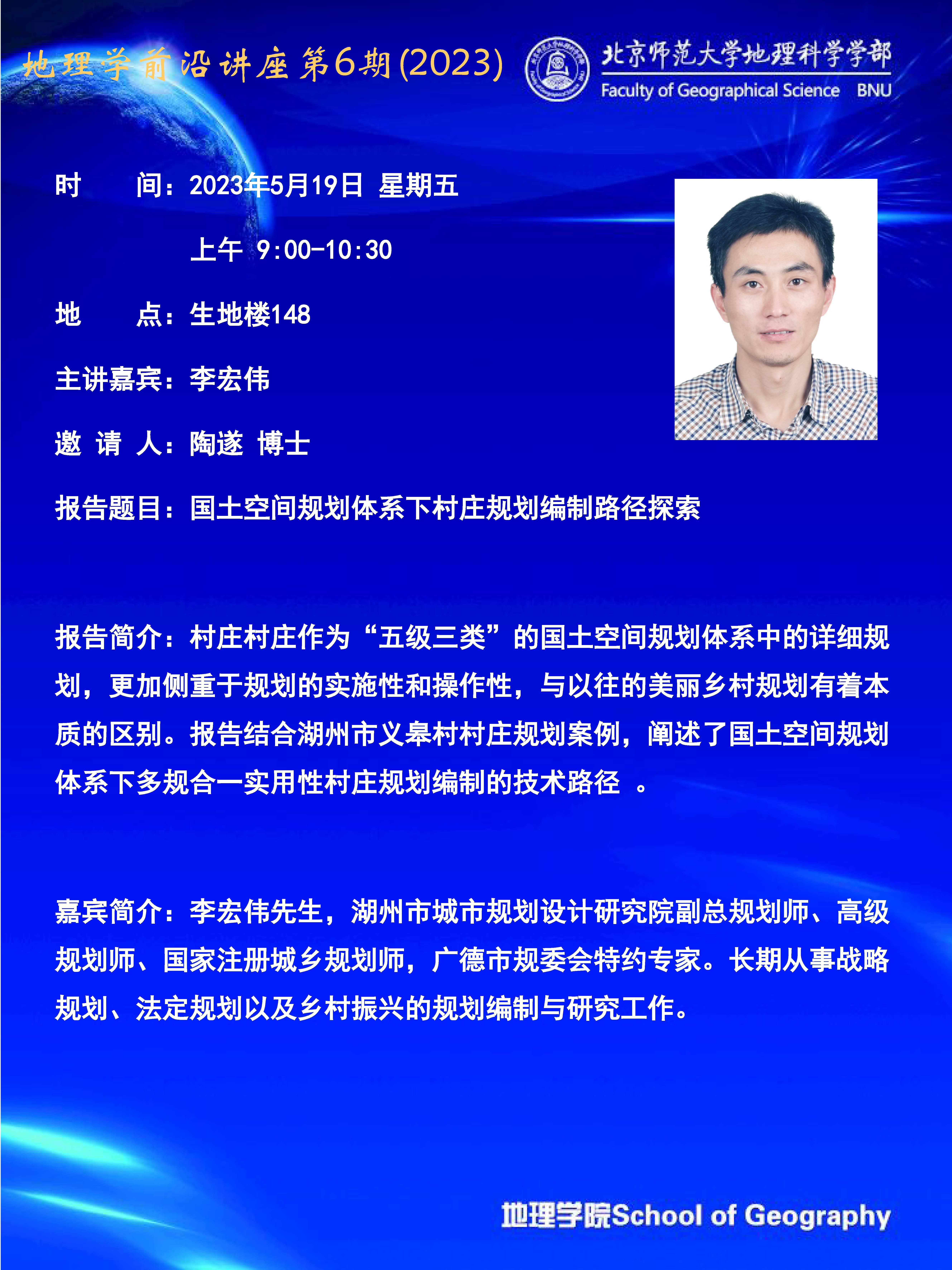【5月19日】地理学前沿讲座第6期(2023)李宏伟:国土空间规划体系下村庄规划编制路径探索