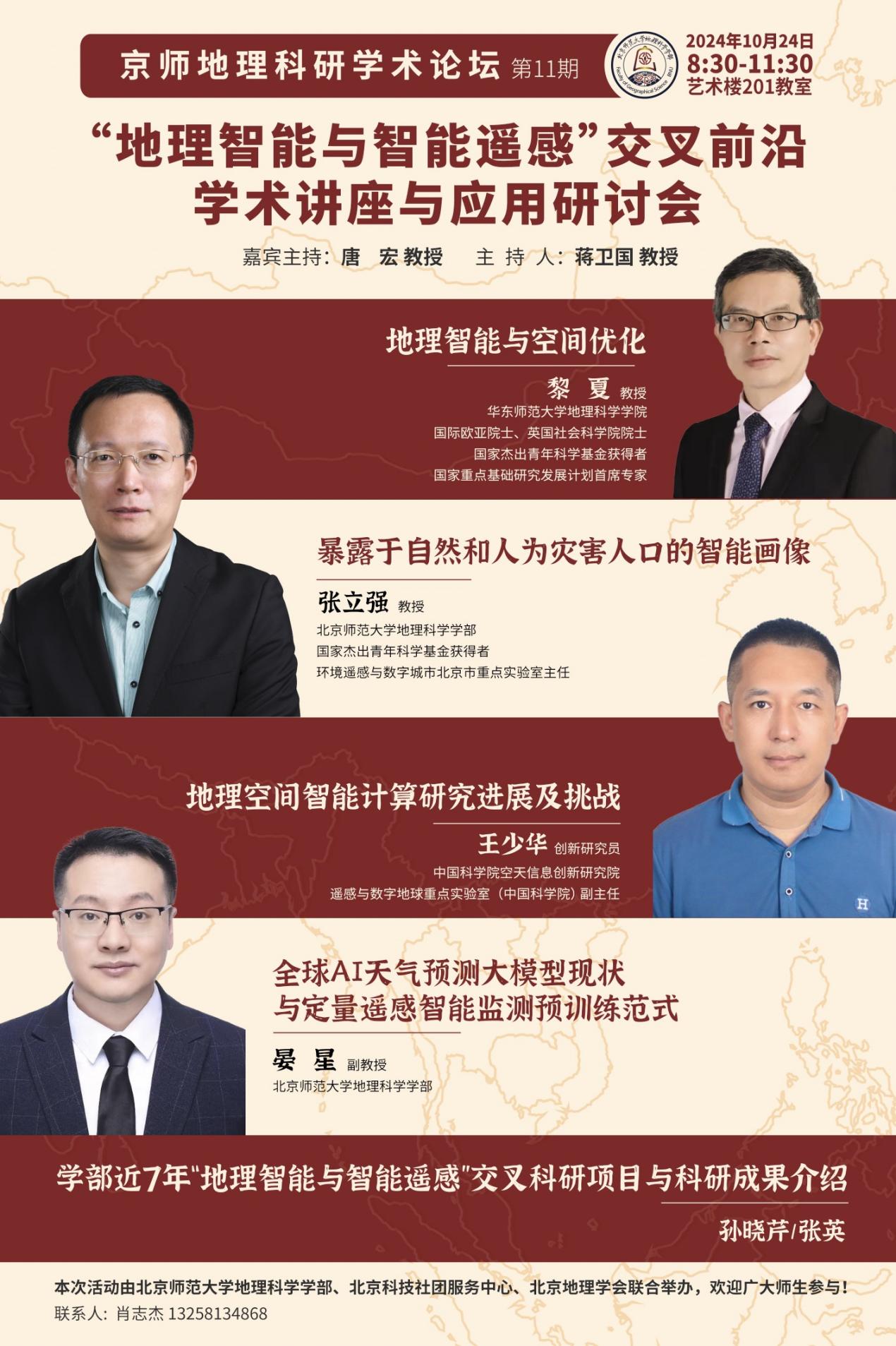 2024年10月24日(周四)上午8:30,京师地理科研学术论坛第11期之“地理智能与智能遥感”交叉前沿学术讲座与应用研讨会,将在 pornvr 艺术楼201教室举行。