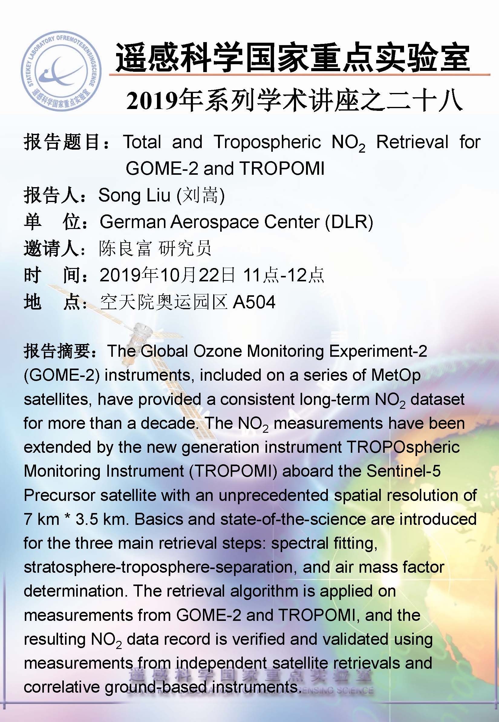 【10月22日讲座】刘嵩,Total and Tropospheric NO2 Retrieval for GOME-2 and TROPOMI